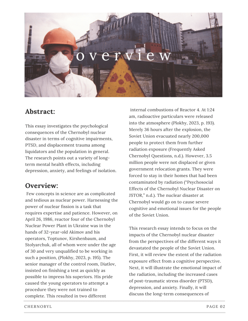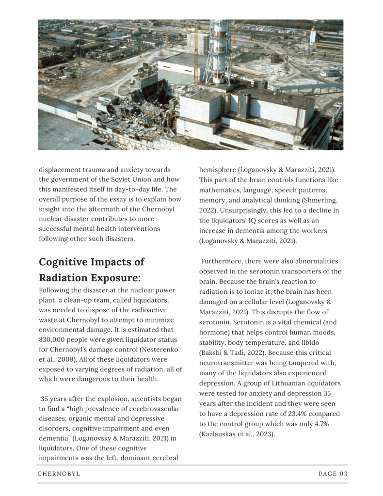 One response to “Psychological Fallout: The Hidden Mental Health Crisis of Chernobyl”